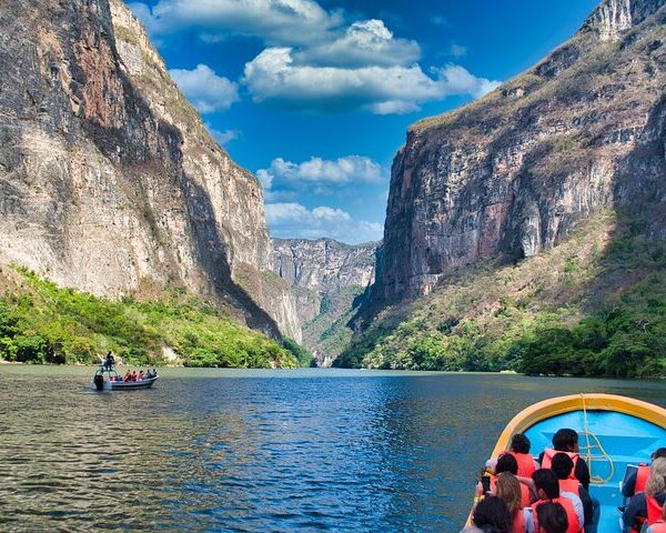 Maravíllese ante las majestuosas paredes del Cañón del Sumidero en esta excursión de 2 horas que se vive como un viaje atrás en el tiempo. Las excursiones salen de Al Grano Café en San Cristóbal de las Casas. Después de un traslado hasta el embarcadero, irá en barco hasta el cañón y, a continuación, podrá disfrutar de un paseo y tendrá la oportunidad de admirar su vida animal y vegetal. Esté atento para ver cocodrilos, monos y una gran variedad de aves. El siguiente punto del itinerario es una visita a la ciudad colonial de Chiapa de Corzo. Tómese tiempo para ver las numerosas tiendas que ofrecen artículos artesanales locales. Continuará hasta San Cristóbal de las Casas, donde finalizará la excursión.